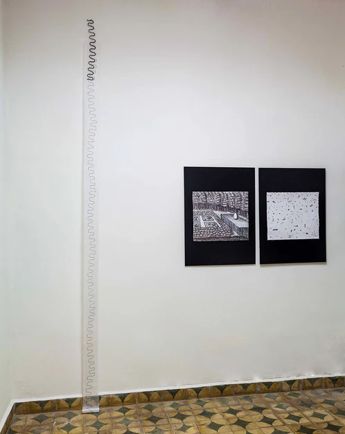 Este montaje multimedia plantea un paralelismo simbólico entre la situación venezolana y la historia del pueblo judío. La exposición emplea “micrografías”, escrituras minúsculas que ponen en tensión el texto y la imagen. Las palabras van apareciendo, y con ellas van surgiendo los contornos de geografías, situaciones y personajes provenientes de mundos distintos pero que se deslizan hacia un destino similar de promesas, mesianismo, barbarie y éxodo. Este desafío se resuelve alternando el dibujo, la gráfica y el video, los cuales construyen una doble narrativa verbal y visual.